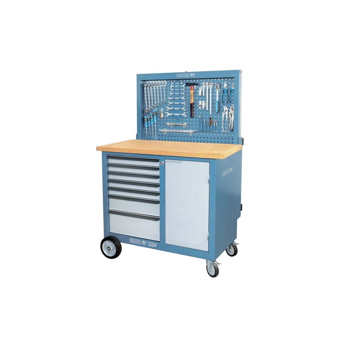 O Carro Bancada para Ferramentas Gedore 001.171 com painel retrátil e jogo de ganchos é uma solução móvel completa para organização e transporte de ferramentas em ambientes profissionais. Fabricado em aço de alta resistência, este carro bancada oferece durabilidade excepcional e funcionalidade superior em oficinas e indústrias. O painel retrátil proporciona acesso rápido às ferramentas mais utilizadas, enquanto o jogo de ganchos inclusos permite organizar chaves, extensões e outros acessórios de forma prática e acessível. Com rodízios robustos que garantem mobilidade mesmo sobre superfícies irregulares, este carro bancada inclui gavetas deslizantes suaves para armazenamento organizado e tampo resistente para trabalhos de montagem. Ideal para profissionais que necessitam de uma estação de trabalho móvel e organizada.