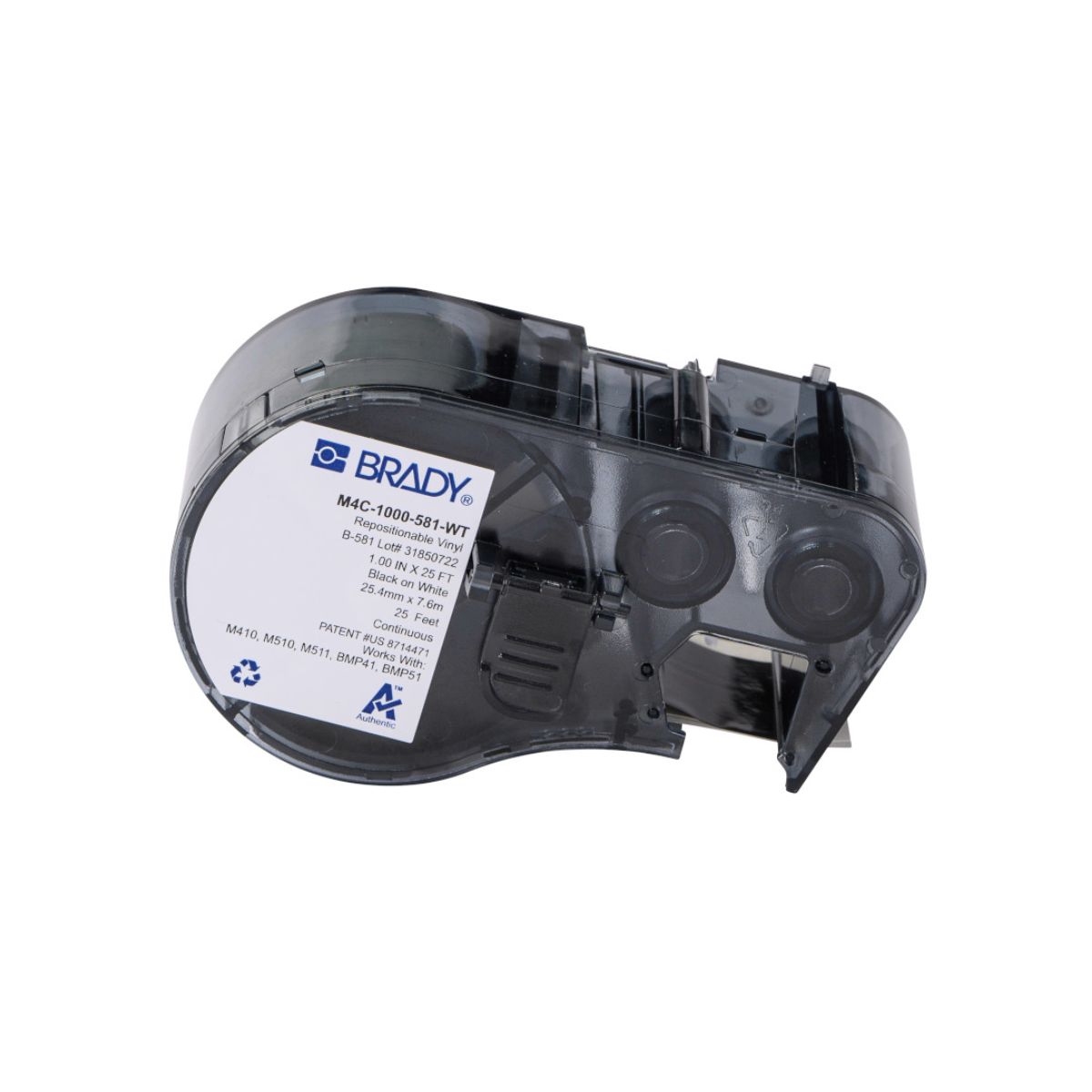 Etiqueta em vinil repetitiva da Brady, compatível com impressoras BMP41, BMP51 e M511. Na cor branca, com largura de 1,000" (25,4 mm) e comprimento de 25' (7,6 m), ideal para identificação contínua de cabos, fios e componentes elétricos, garantindo legibilidade e durabilidade em ambientes industriais.