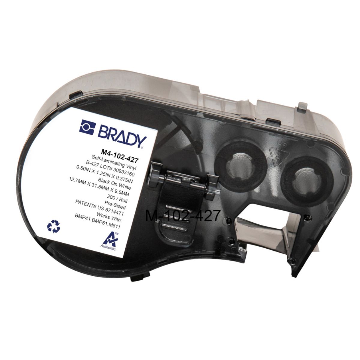 A Etiqueta Brady B427 M4-102-427 é fabricada em vinil autolaminado de alto desempenho, apresentando formato retangular alongado com dimensões de 31,75 mm de largura por 12,7 mm de altura, com área útil de impressão de 9,53 mm. Este material premium possui camada protetora transparente integrada que sela permanentemente a impressão, oferecendo proteção superior contra abrasão, produtos químicos, óleos, solventes e condições ambientais severas. A base branca proporciona excelente contraste para impressões em preto, garantindo máxima legibilidade mesmo em aplicações que exigem texto mais extenso.