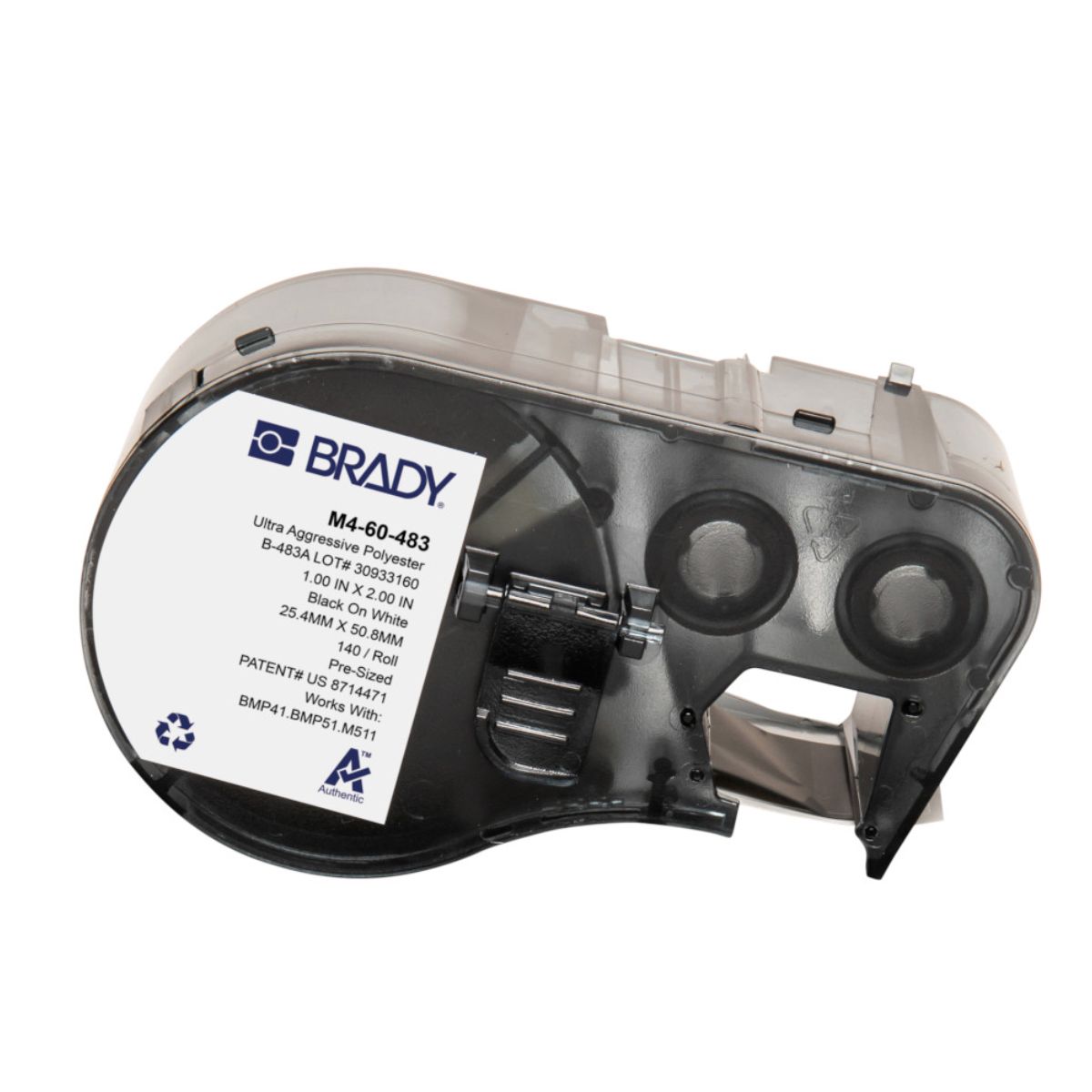 A Etiqueta Brady B483 M4-60-483 é fabricada em poliéster ultra-agressivo de altíssima performance, apresentando formato grande com dimensões de 50,8 mm de largura por 25,4 mm de altura. Este material premium foi desenvolvido para as aplicações mais exigentes, com adesivo ultra-agressivo que proporciona fixação permanente mesmo em superfícies complexas como polipropileno, polietileno, PVC e outros plásticos de baixa energia superficial. A superfície branca oferece excelente contraste para impressões em preto, garantindo máxima legibilidade e espaço amplo para informações detalhadas em ambientes industriais severos.