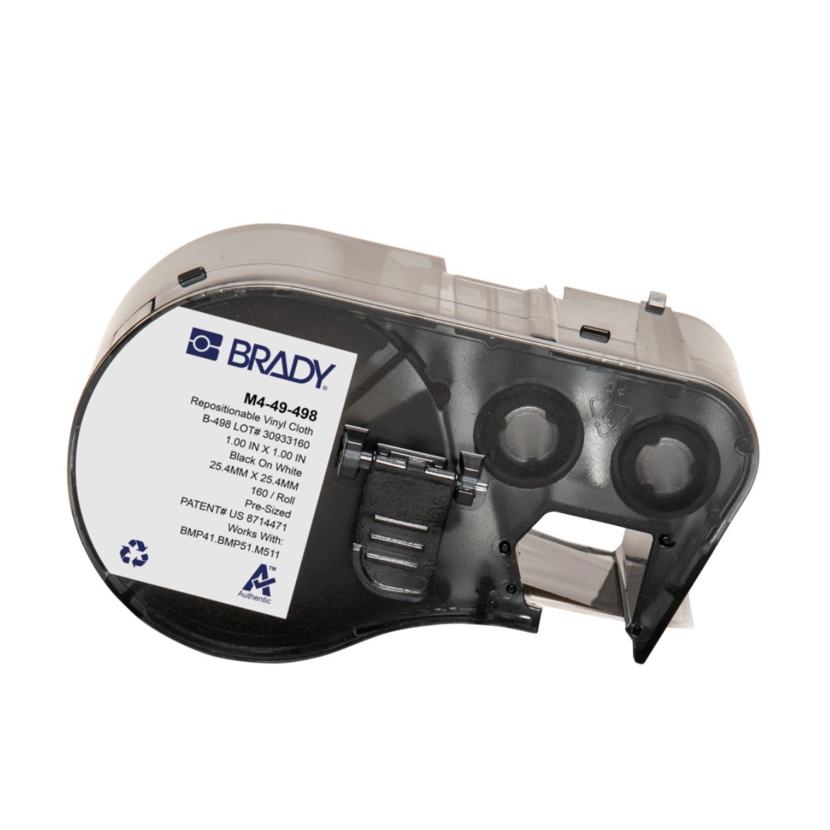 A Etiqueta Brady B498 M4-49-498 é fabricada em tecido de vinil de alta qualidade, apresentando formato quadrado de 25,4 mm x 25,4 mm (1,00" x 1,00"). Este material possui adesivo reposicionável que permite remoção limpa e recolocação segura em diversas superfícies. A superfície branca oferece excelente contraste para impressões em preto, garantindo máxima legibilidade em aplicações que exigem flexibilidade de posicionamento e alta durabilidade.