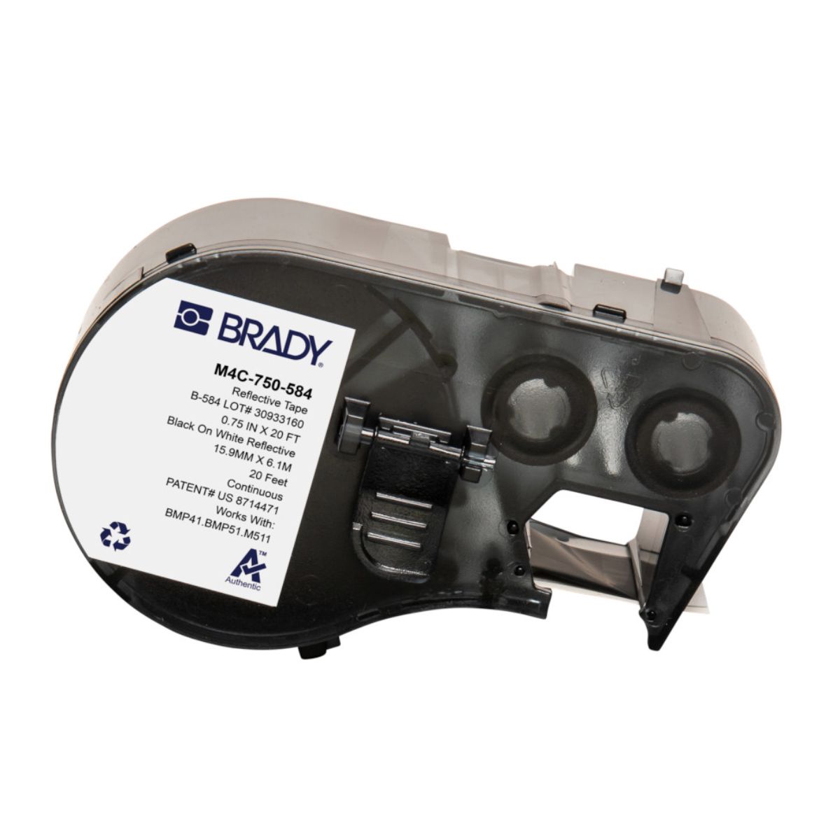 A Etiqueta Brady B584 M4C-750-584 é fabricada em material refletivo de alta performance, apresentando 19,05 mm de largura (0,75") e disponível em rolo de 20 pés (6,1 metros). Este material premium possui superfície branca refletiva que oferece excelente visibilidade tanto diurna quanto noturna, refletindo a luz para máxima segurança. O material proporciona durabilidade excepcional contra intempéries, UV, água e condições ambientais severas, sendo ideal para aplicações que exigem identificação de segurança e alta visibilidade em condições de pouca luz.