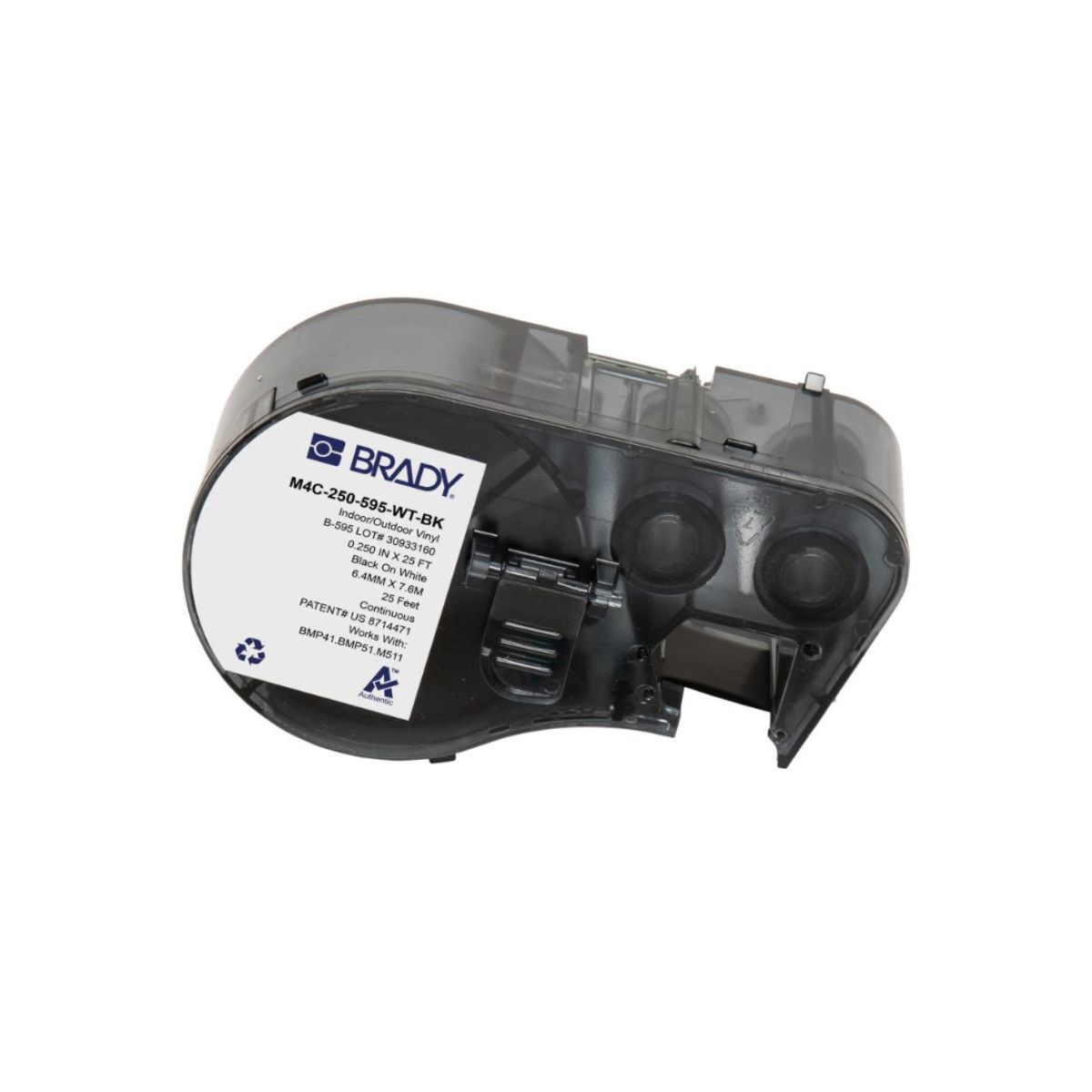 A Etiqueta Brady B595 M4C-250-595-WT-BK é fabricada em vinil de alta qualidade, apresentando 6,35 mm de largura (0,25") e disponível em rolo de 25 pés (7,6 metros). Este material premium possui superfície branca com impressão em preto, oferecendo máximo contraste para excelente legibilidade mesmo em espaços reduzidos. O vinil proporciona boa durabilidade contra abrasão, água, óleos e condições ambientais, sendo ideal para aplicações que exigem identificação permanente em componentes compactos e áreas com limitação de espaço.