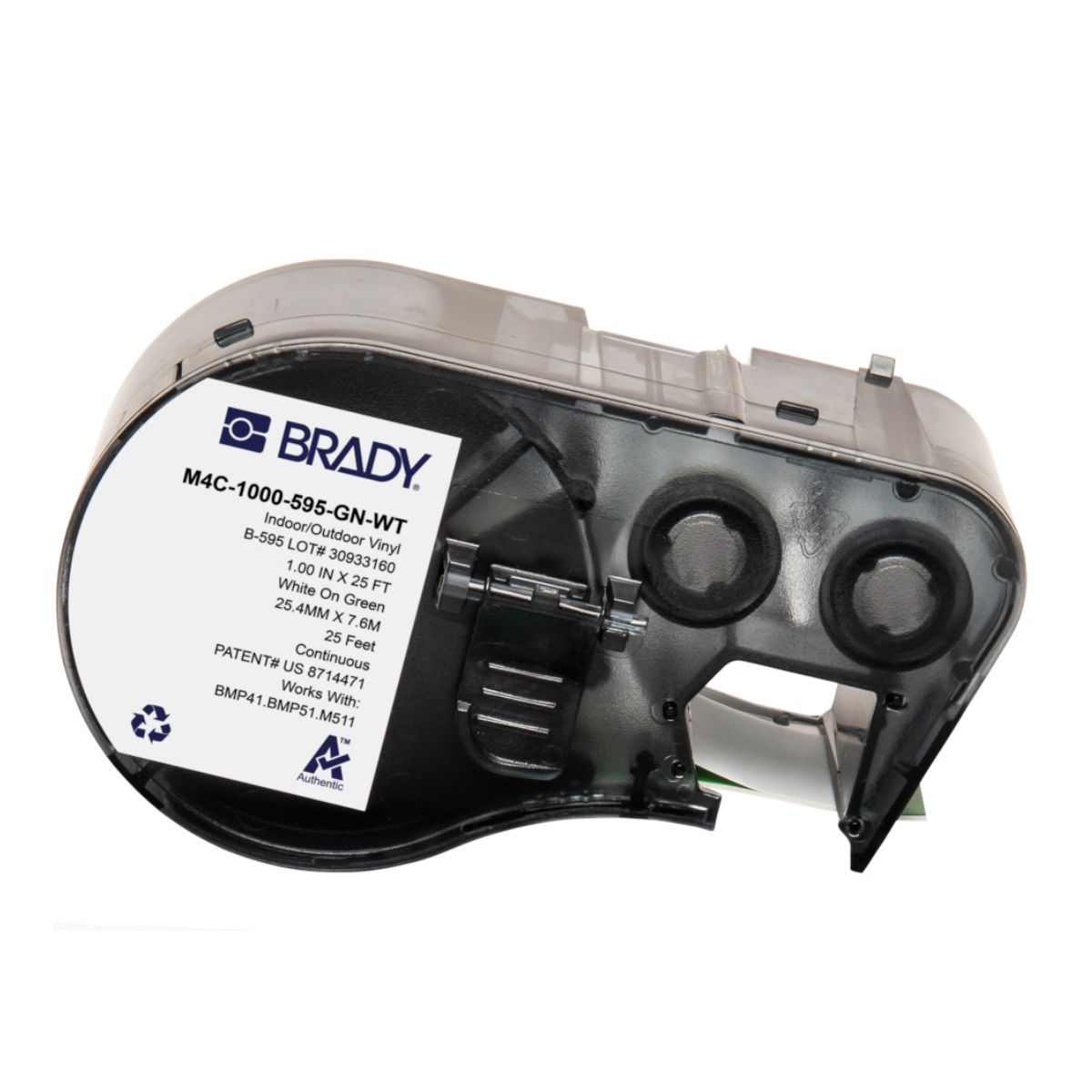 A Etiqueta Brady B595 M4C-1000-595-GN-WT é fabricada em vinil de alta qualidade, apresentando 25,4 mm de largura (1,000") e disponível em rolo de 25 pés (7,62 metros). Este material premium possui superfície verde com impressão em branco, oferecendo excelente contraste para boa legibilidade e identificação por cores. O vinil proporciona boa durabilidade contra abrasão, água, óleos e condições ambientais, sendo ideal para aplicações que exigem identificação permanente com codificação por cores para segurança, status ou organização em grande escala.
