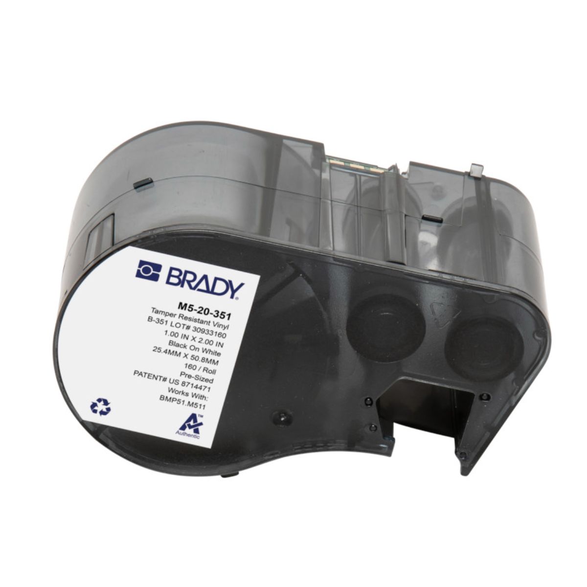 A Etiqueta Brady B351 M5-20-351 é fabricada em vinil de alta qualidade, apresentando formato retangular vertical de 25,4 mm de largura por 50,8 mm de altura (1,00" x 2,00"). Este material premium possui superfície branca que oferece excelente contraste para impressões em preto, garantindo máxima legibilidade. O vinil proporciona boa durabilidade contra abrasão, água, óleos e condições ambientais, sendo ideal para aplicações que exigem identificação permanente com formato vertical para múltiplas linhas de texto ou informações detalhadas.