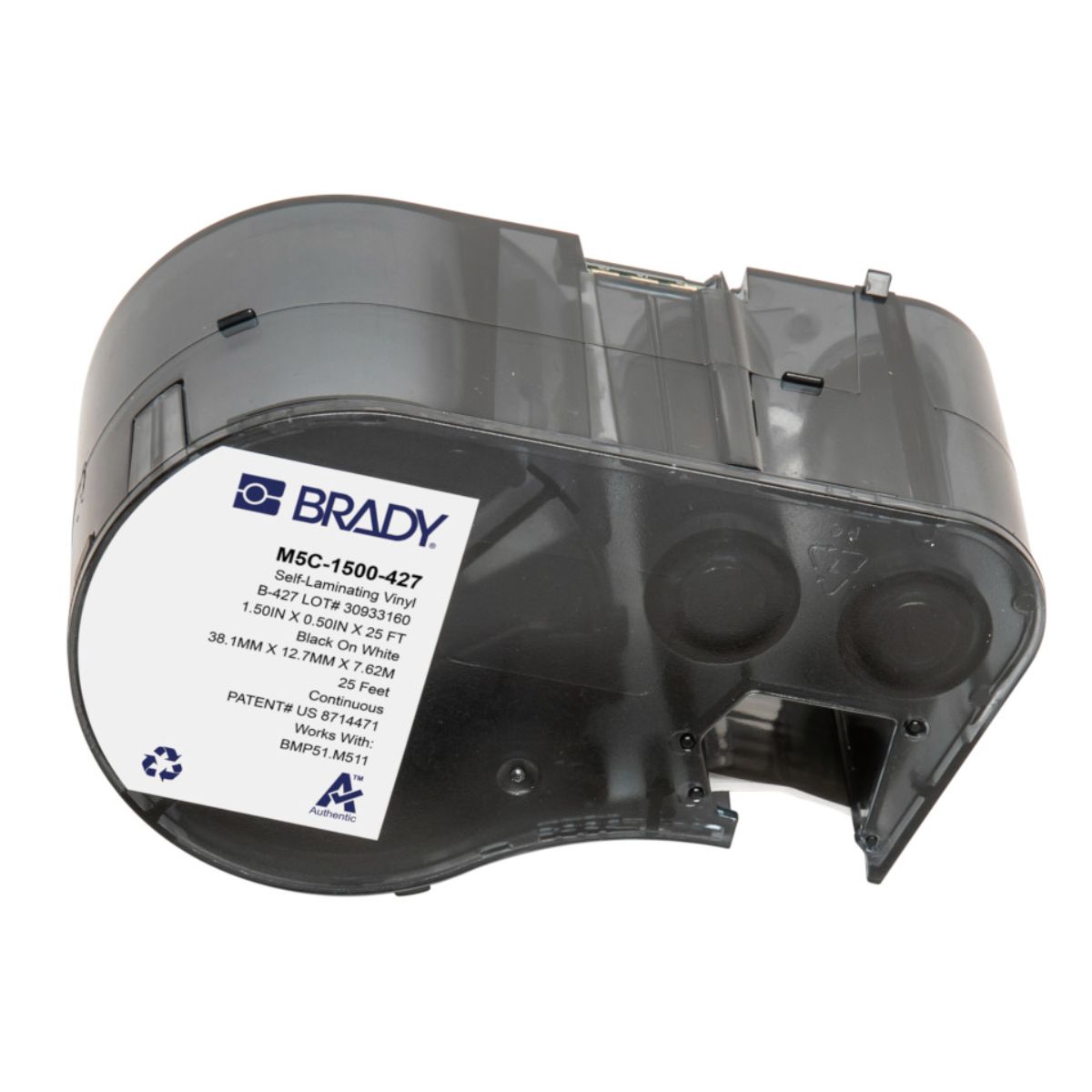 A Etiqueta Brady B427 M5C-1500-427 é fabricada em vinil autolaminado de alta performance, apresentando 38,1 mm de largura (1,50") com área útil de impressão de 12,7 mm, disponível em rolo de 25 pés (7,62 metros). Este material premium possui camada protetora transparente integrada que sela permanentemente a impressão, oferecendo proteção superior contra abrasão, produtos químicos, óleos, solventes e condições ambientais severas. A base branca proporciona excelente contraste para impressões em preto, garantindo máxima legibilidade e durabilidade em aplicações que exigem formato extra-largo para textos muito extensos ou múltiplas colunas de informação.