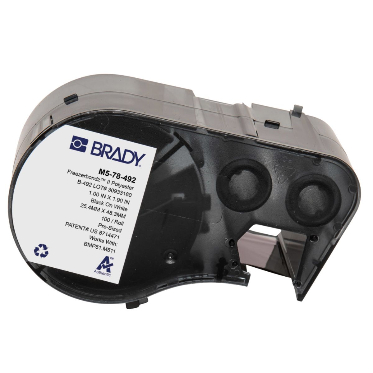A Etiqueta Brady B492 M5-78-492 é fabricada em material autolaminado de alta performance, apresentando formato retangular vertical de 48,26 mm de largura por 25,4 mm de altura (1,900" x 1,000"). Este material premium possui camada protetora transparente integrada que sela permanentemente a impressão, oferecendo proteção superior contra abrasão, produtos químicos, óleos, solventes e condições ambientais severas. A base branca proporciona excelente contraste para impressões em preto, garantindo máxima legibilidade e durabilidade em aplicações que exigem identificação permanente com proteção integrada e formato vertical para informações detalhadas.