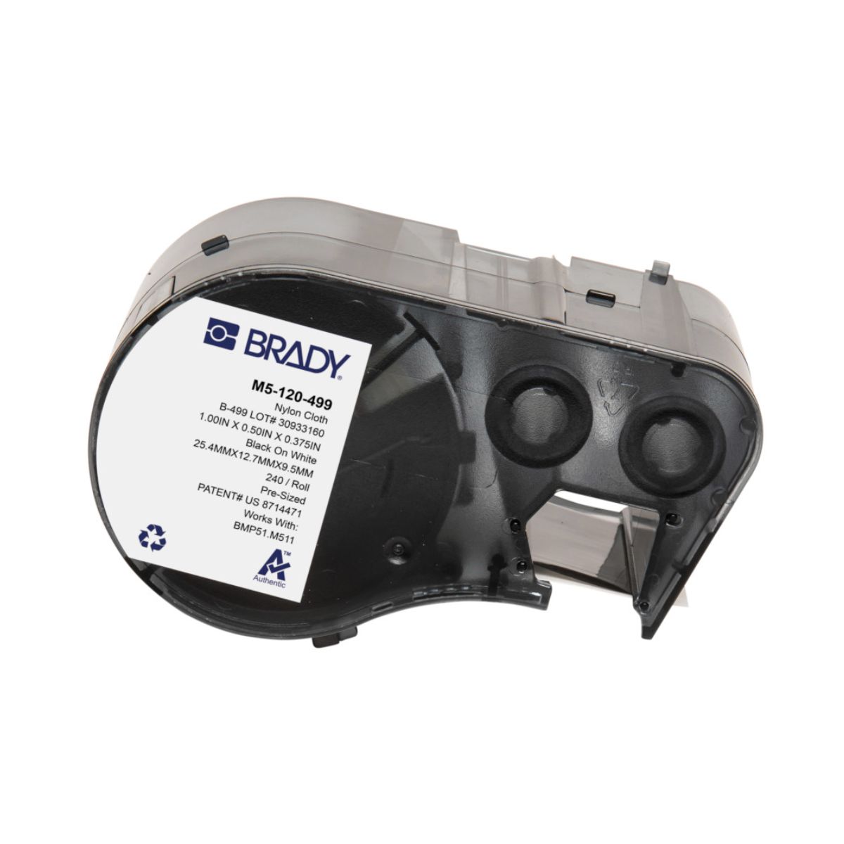 A Etiqueta Brady B499 M5-120-499 é fabricada em nylon de alta resistência, apresentando formato retangular de 25,4 mm de largura por 12,7 mm de altura, com área útil de impressão de 9,53 mm (1" x 0,50" x 0,375"). Este material premium possui superfície branca que oferece excelente contraste para impressões em preto, garantindo máxima legibilidade. O nylon proporciona durabilidade excepcional contra abrasão, produtos químicos, óleos e condições ambientais severas, sendo ideal para aplicações que exigem identificação permanente com alta resistência mecânica e estabilidade dimensional.
