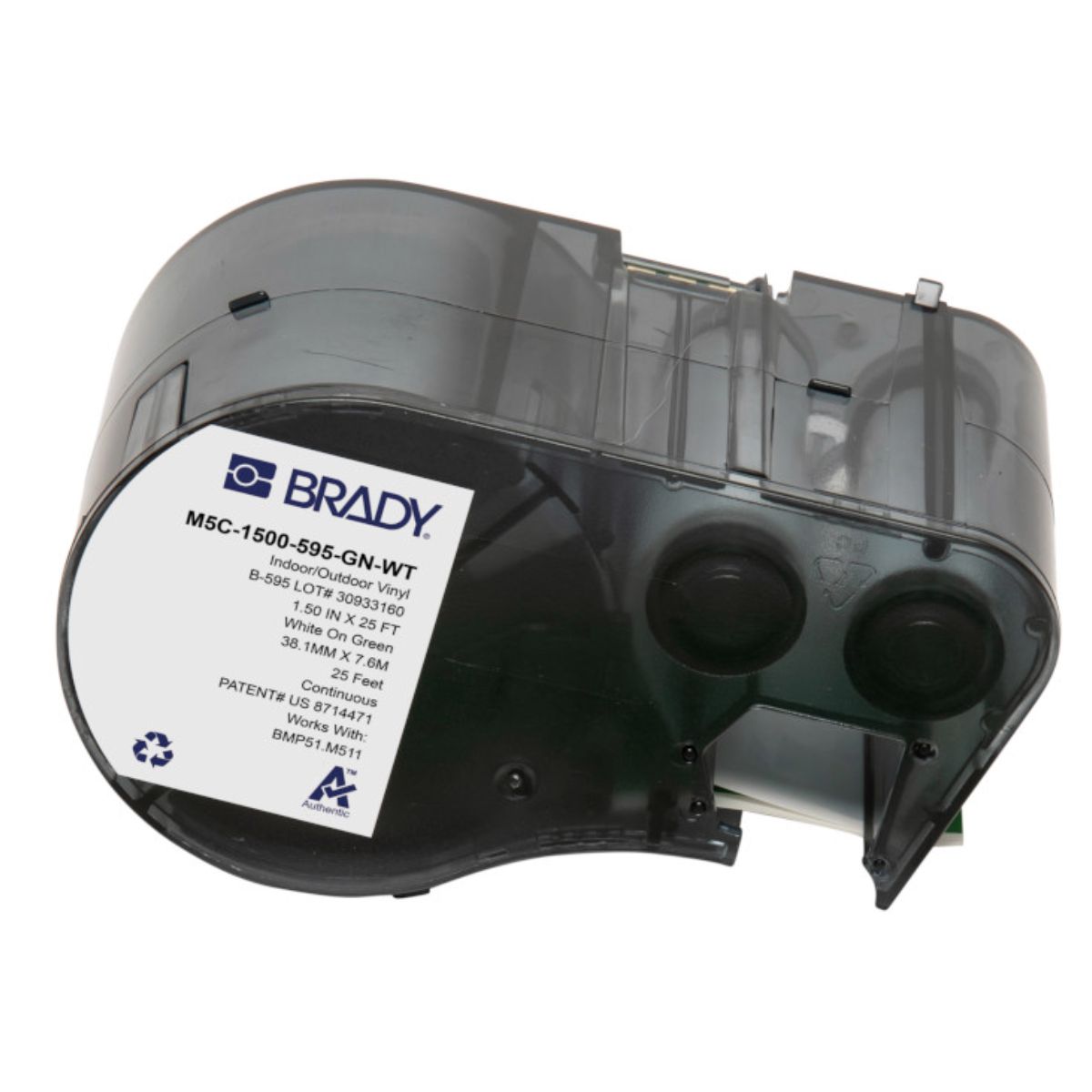 A Etiqueta Brady B595 M5C-1500-595-GN-WT é fabricada em vinil de alta qualidade, apresentando 38,1 mm de largura (1,50") e disponível em rolo de 25 pés (7,62 metros). Este material premium possui superfície verde com impressão em branco, oferecendo excelente contraste para boa legibilidade e identificação por cores. O vinil proporciona boa durabilidade contra abrasão, água, óleos e condições ambientais, sendo ideal para aplicações que exigem identificação permanente com codificação por cores para segurança, status ou organização em grande escala.
