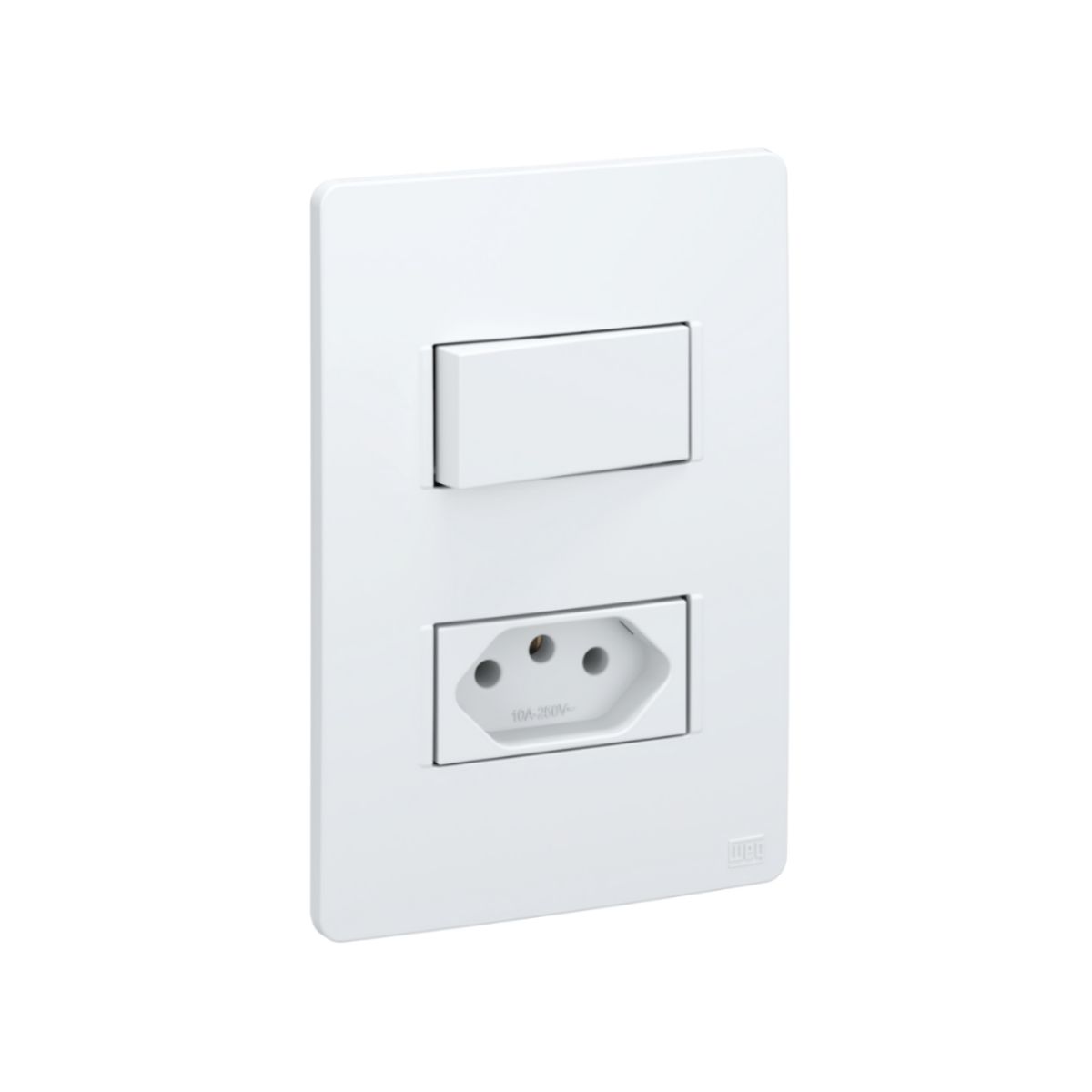 - Solução combinada que integra interruptor e tomada 20A em um único dispositivo elegante;
