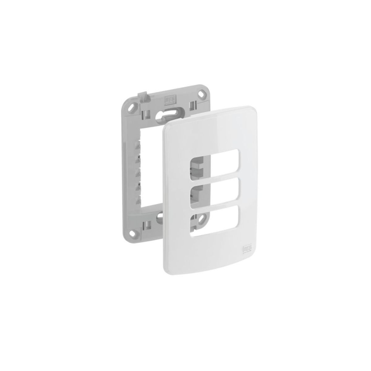 A Placa 4x2 com Suporte 3 Posições 13295558 da linha Compose WEG é uma solução completa e versátil para instalações elétricas que demandam múltiplos módulos em uma única unidade. Fabricada em material termoplástico de alta resistência na cor branca, esta placa padrão 4x2 (4 polegadas de altura por 2 polegadas de largura) incorpora um suporte interno robusto capaz de acomodar até três módulos simultaneamente. O design integrado da linha Compose oferece instalação simplificada, eliminando a necessidade de suportes adicionais e garantindo alinhamento perfeito entre os módulos. O acabamento texturizado branco mascara imperfeições e proporciona estética moderna, enquanto o sistema de fixação otimizado assegura montagem rápida e segura em caixas de embutir padrão. A construção unibody garante durabilidade excepcional, resistência ao impacto e estabilidade dimensional, atendendo rigorosamente às normas técnicas de segurança elétrica.