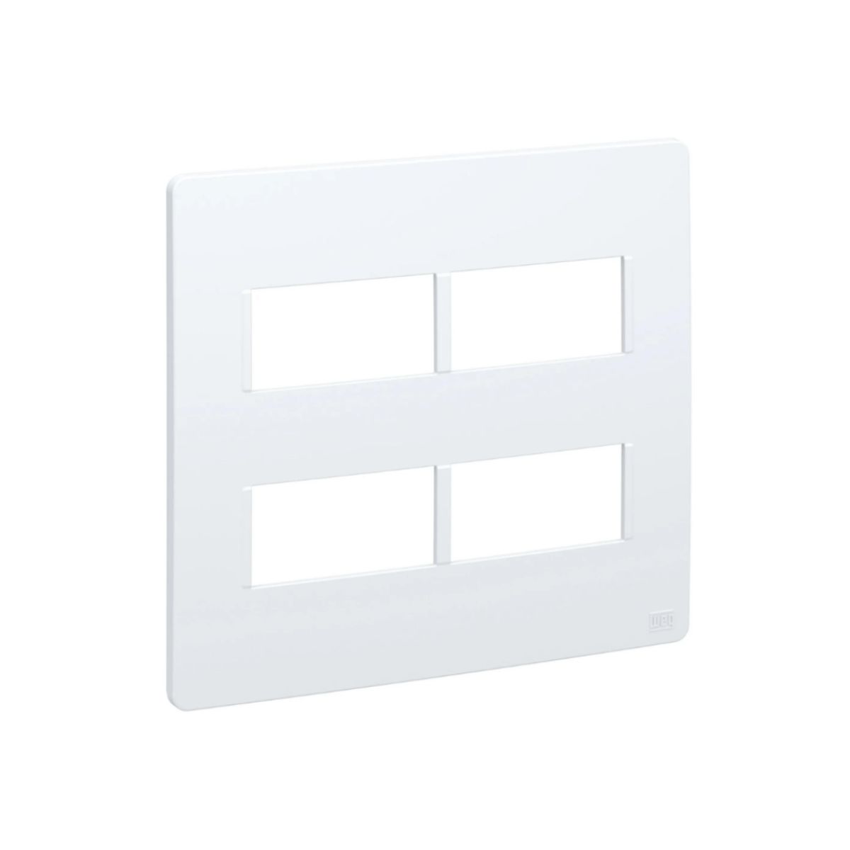 A Placa 4x4 4 Posições Distanciadas 14857782 da linha Esatta WEG é uma solução técnica especializada para instalações elétricas que requerem módulos com espaçamento otimizado em configuração quadrada. Fabricada em material termoplástico de alta performance na cor branca, esta placa padrão 4x4 (4 polegadas de altura por 4 polegadas de largura) oferece quatro posições estrategicamente distanciadas, organizadas em formato 2x2, proporcionando o espaçamento ideal para módulos que necessitam de maior área de trabalho ou dissipação térmica. O design engenheirado da linha Esatta combina precisão dimensional com estética refinada, apresentando acabamento liso branco com tecnologia anti-amarelamento que preserva a aparência original. Os pontos de fixação são calculados para distribuição uniforme de tensão, garantindo instalação segura e estável em caixas de embutir padrão 4x4. A construção premium assegura resistência superior ao impacto, deformação e variações térmicas, atendendo e superando as mais rigorosas normas técnicas de segurança elétrica.