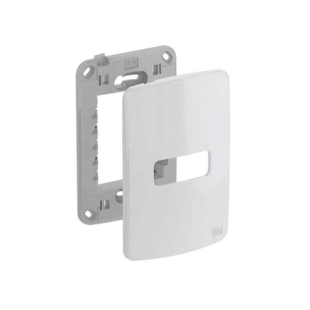 O Conjunto Placa e Suporte 4x2 1 Posição Compose Branco R.13295536 da WEG é uma solução completa e eficiente para instalações elétricas que demandam simplicidade e confiabilidade. Fabricado em material termoplástico de alta qualidade na cor branca, este conjunto padrão 4x2 (4 polegadas de altura por 2 polegadas de largura) integra placa e suporte em uma única referência, oferecendo solução otimizada para instalação de um módulo individual. O design funcional da linha Compose combina praticidade e estética moderna, apresentando acabamento texturizado branco que mascara imperfeições e proporciona durabilidade superior. O suporte integrado é estrategicamente projetado para fixação segura e estável do módulo, garantindo instalação rápida e perfeito alinhamento em caixas de embutir padrão. A construção unificada assegura resistência ao impacto, desgaste e variações térmicas, atendendo rigorosamente às normas técnicas de segurança elétrica para aplicações residenciais e comerciais.