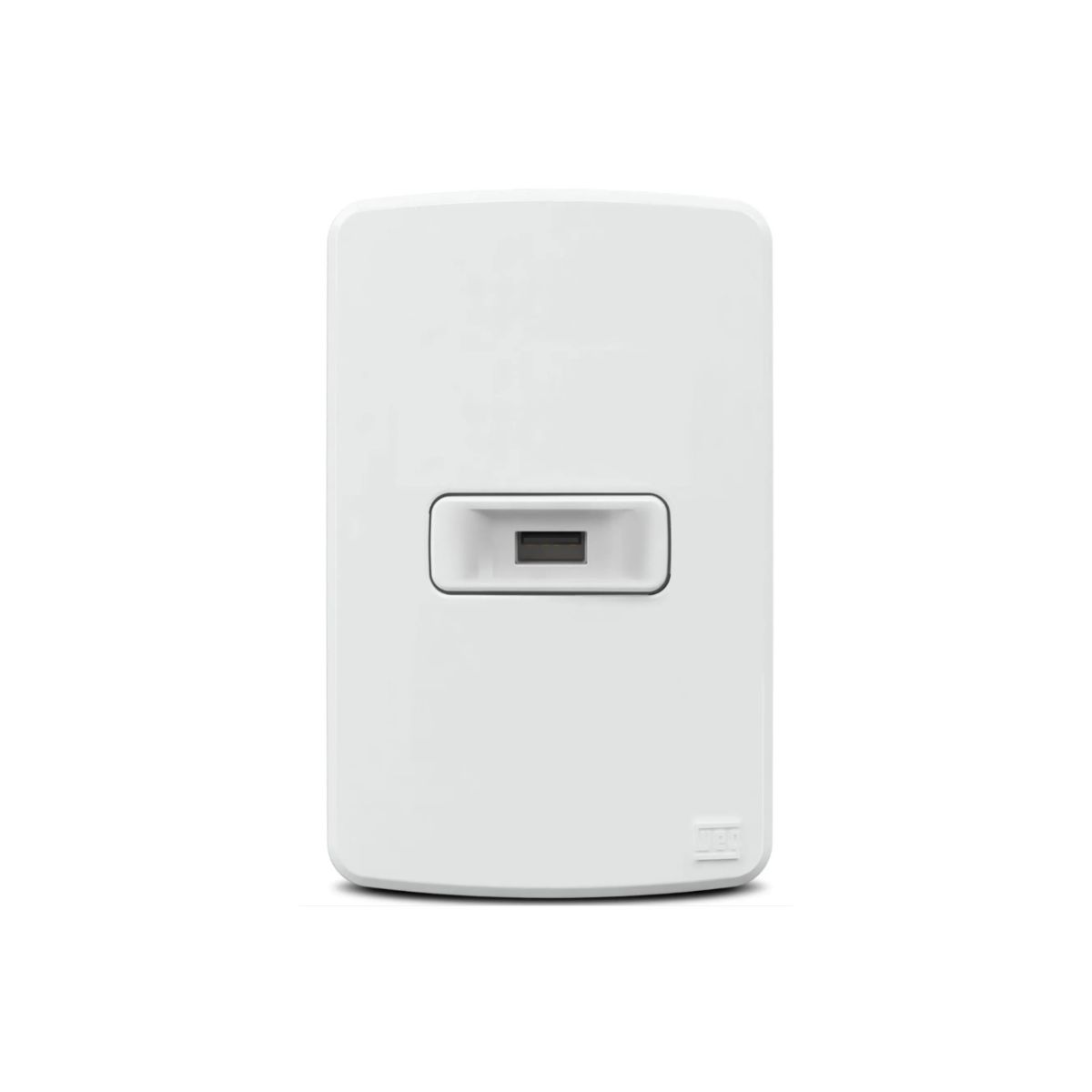 - Conjunto completo com carregador USB bivolt, suporte e placa 4x2 integrados;